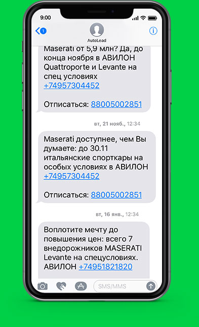 AutoLead является поставщиком услуги таргетированных SMS-рассылок в автомобильном сегменте по всей России.